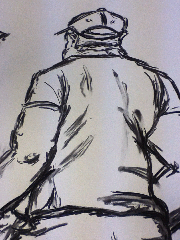 Today we started by doing one sustained pose of John for 30 minutes. Aftrewards, we did 5 quick gesture drawings where after every 5 minutes john moved into a new and different posistion for us to replicate.